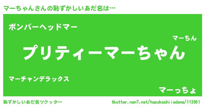 | 男性向けラノベタイトル風あだ名 | 『マーちゃんの憂鬱』『緋弾のマーチャン』 |
