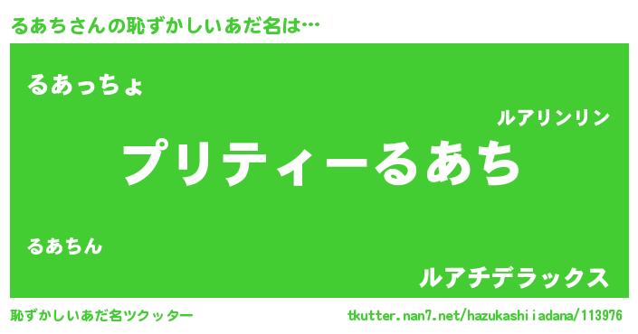 | ヒーロー風カッコイイあだ名 | 『スーパールアチ』『ウルトラるあちマン』 |