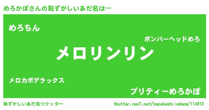 | 意味不明あだ名 | 『とにかく怪しいめろかぽ』 |