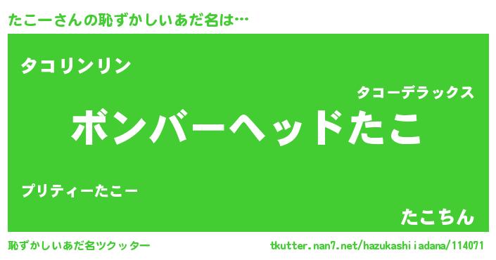 | ヒーロー風カッコイイあだ名 | 『友情の使者たこー』『幻影騎士タコ』 |