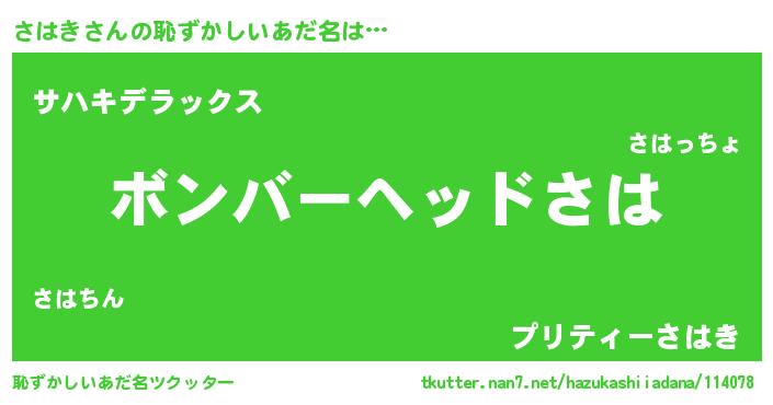 | ヒーロー風カッコイイあだ名 | 『仮面サハダー』『慈愛の使者さはき』 |