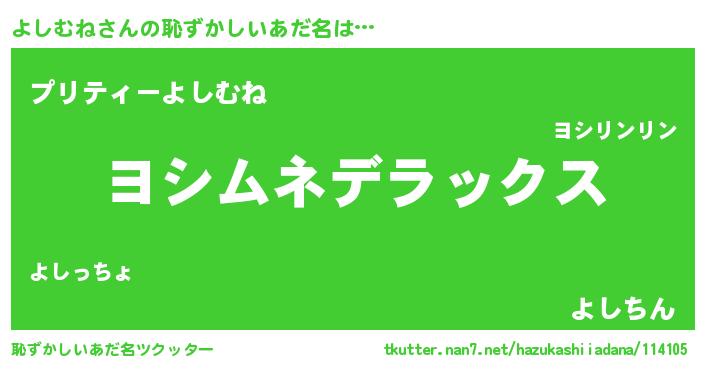 | ヘコむあだ名 | 『よしっふぃ~』『よしむね(笑)』 |