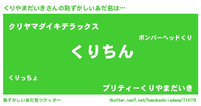 | 意味不明あだ名 | 『永久保存くりやまだいき』 |