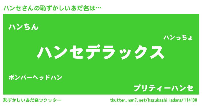 | ポケモン風あだ名 | 『ハーンイ』『ハンセウス』 |