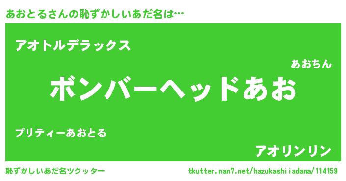 | ヒーロー風カッコイイあだ名 | 『慈愛の使者あおとる』『暗黒騎士アオ』 |