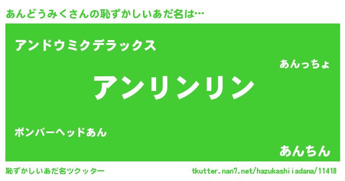 | 意味不明あだ名 | 『とにかく怪しいあんどうみく』 |
