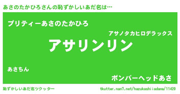 | 意味不明あだ名 | 『とにかく怪しいあさのたかひろ』 |