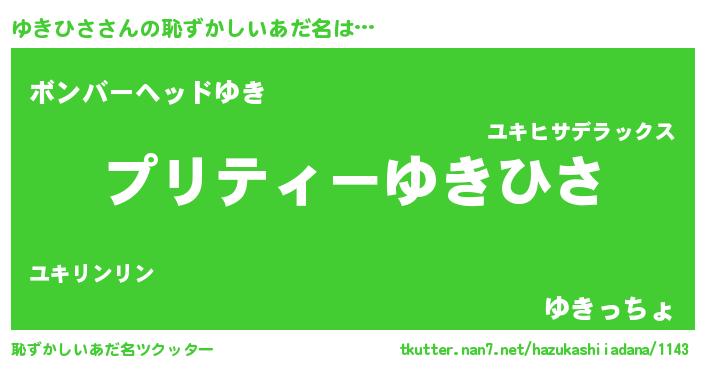 | ヒーロー風カッコイイあだ名 | 『スーパーユキヒサ』『仮面ユキダー』 |