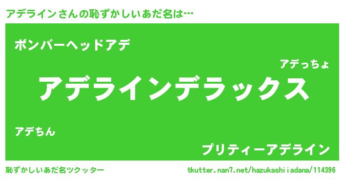 | 意味不明あだ名 | 『自称アデライン』『ペロリンアデライン』 |