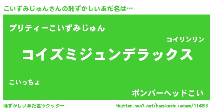 | 女子向けラノベタイトル風あだ名 | 『こいずみじゅんの玉の輿計画!』 |