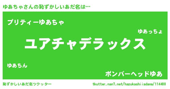 | 意味不明あだ名 | 『自称ゆあちゃ』『ペロリンゆあちゃ』 |