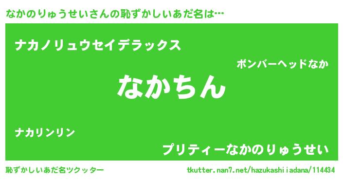 | ヘコむあだ名 | 『なかのりゅうせい(遠い目)』『なかにゅー』 |