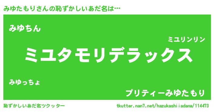 | 男性向けラノベタイトル風あだ名 | 『うちのみゆたもりが世界を掌握している!』 |