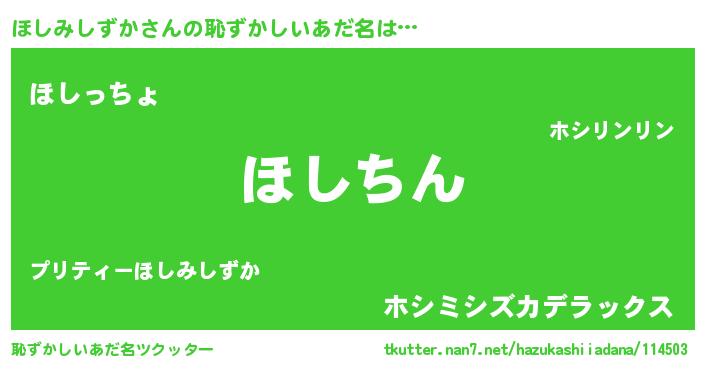 | ヘコむあだ名 | 『ほしみしずか(笑)』『なまこ酢』 |