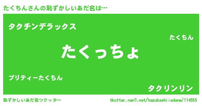 | 男性向けラノベタイトル風あだ名 | 『この素晴らしい世界にたくちんを!』 |