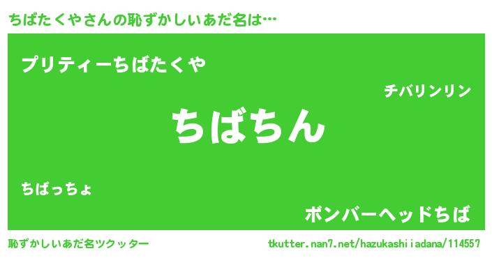 | ヘコむあだ名 | 『ちばたくや(苦笑)』『ちばっふぃ~』 |