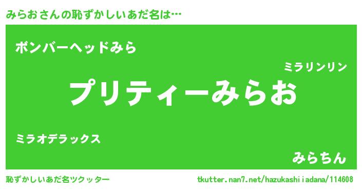 | 意味不明あだ名 | 『ペロリンみらお』『永久保存みらお』 |