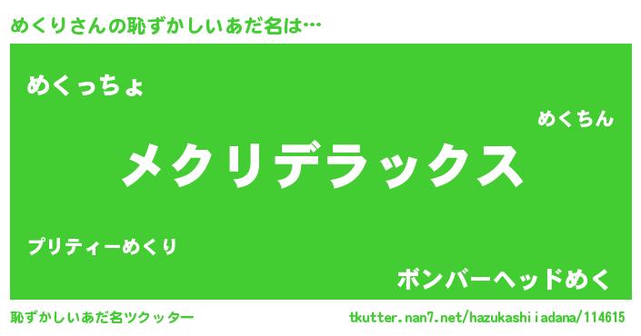 | 意味不明あだ名 | 『住所不定無職めくり(7歳)』『自称めくり』 |