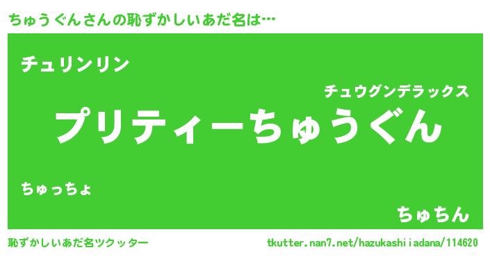 | 意味不明あだ名 | 『ペロリンちゅうぐん』『自称ちゅうぐん』 |