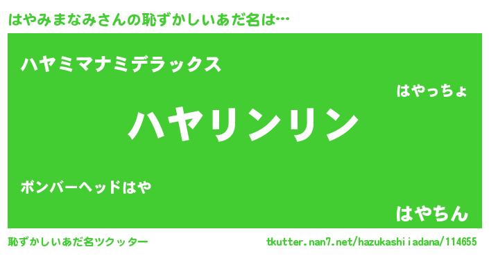 | ヘコむあだ名 | 『はやを』『はやみまなみ(震え声)』 |