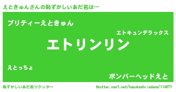 | ヘコむあだ名 | 『えとを』『えとふぇ~』『なまこ酢』 |