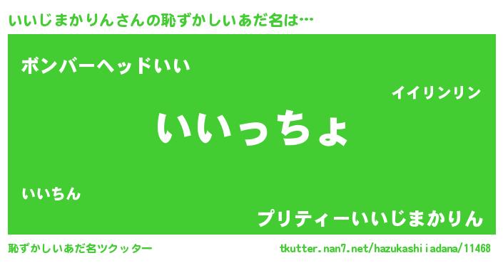 | 男性向けラノベタイトル風あだ名 | 『この素晴らしい世界にいいじまかりんを!』 |