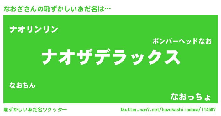 | 男性向けラノベタイトル風あだ名 | 『なおざ~年齢イコール彼女いない歴の魔法使い~』 |