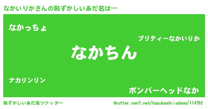 | ヘコむあだ名 | 『なかいりか(小並感)』『レバニラ』 |