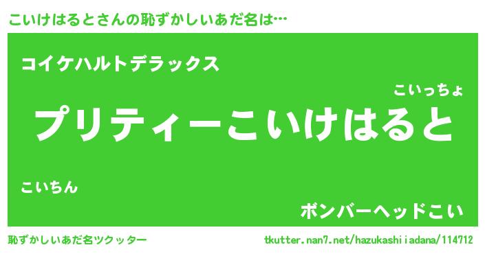 | ヒーロー風カッコイイあだ名 | 『スーパーコイケハルト』『仮面コイダー』 |