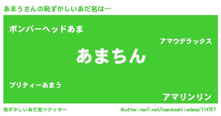 | ポケモン風あだ名 | 『アマゴンZ』『ゼニアマ』『ヒアマウ』 |