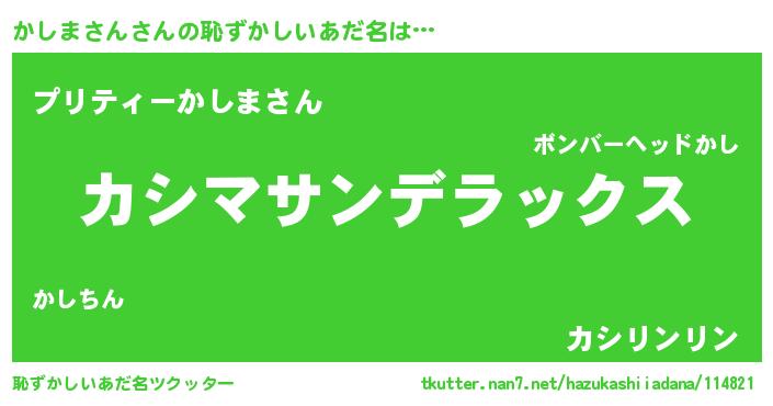 | ヒーロー風カッコイイあだ名 | 『究極戦士カシマサン』『銀牙騎士カシ』 |