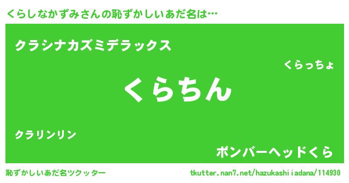 | ヘコむあだ名 | 『くらしなかずみ(笑)』『なまこ酢』 |