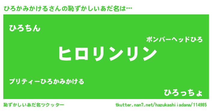 | 男性向けラノベタイトル風あだ名 | 『ひろかみかけるの嫁は女の子じゃないと思った?』 |