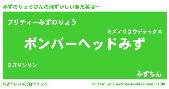 | ヘコむあだ名 | 『みずふぇ~』『みずのりょう(笑)』 |