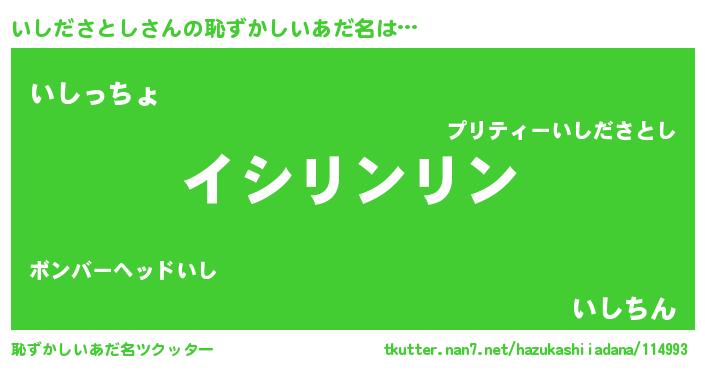 | ポケモン風あだ名 | 『イシゴンZ』『ヒイシダサトシ』 |
