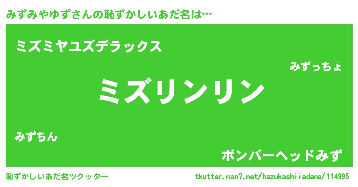 | ポケモン風あだ名 | 『ミズゴンZ』『ヒミズミヤユズ』 |