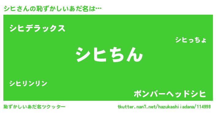 | 意味不明あだ名 | 『永久保存シヒ』『自称シヒ』 |