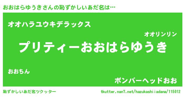 | ヒーロー風カッコイイあだ名 | 『スーパーオオハラユウキ』 |