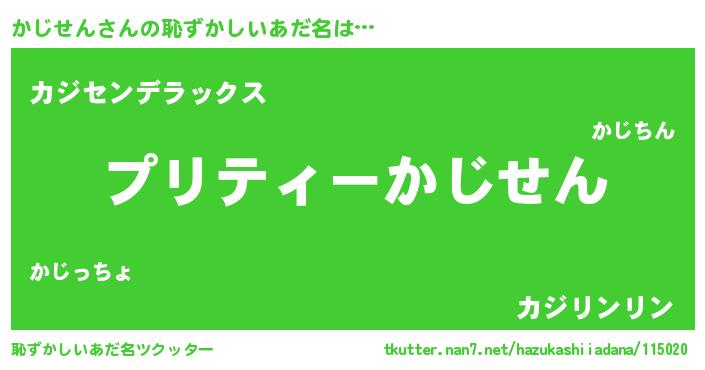 | 意味不明あだ名 | 『ペロリンかじせん』『自称かじせん』 |