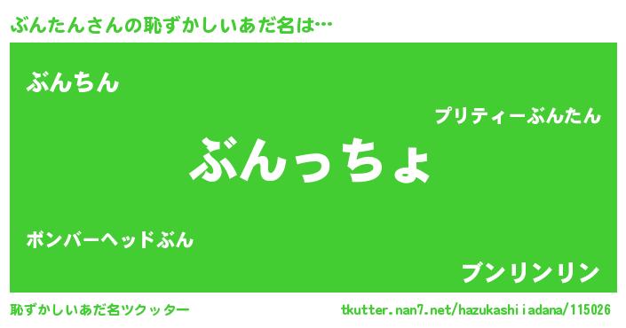 | 男性向けラノベタイトル風あだ名 | 『うちのぶんたんが世界を掌握している!』 |