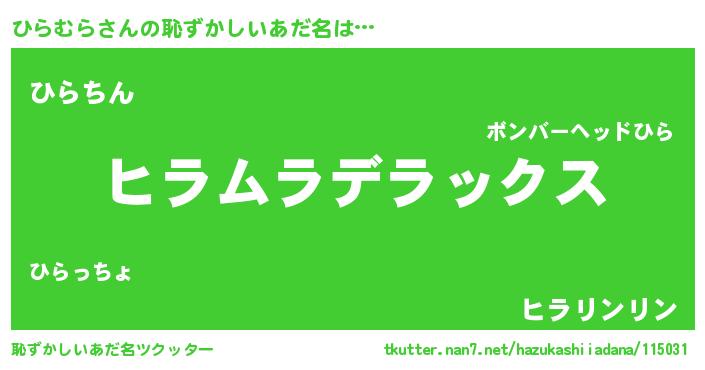 | 意味不明あだ名 | 『自称ひらむら』『永久保存ひらむら』 |