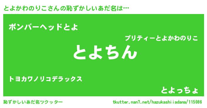 | ヘコむあだ名 | 『とよかわのりこ(笑)』『牛乳』 |