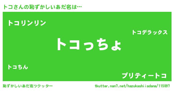 | ポケモン風あだ名 | 『トコダネ』『トコキング』『ヒトコ』 |