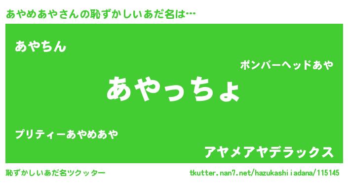 | ヘコむあだ名 | 『なまこ酢』『あやめあや(震え声)』 |