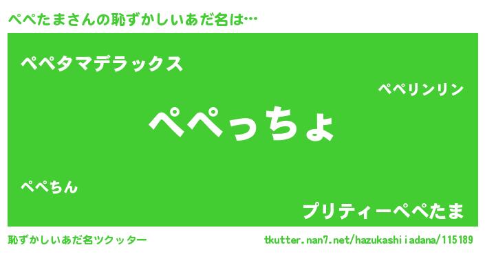 | ヒーロー風カッコイイあだ名 | 『ウルトラぺぺたまマン』『仮面ペペダー』 |