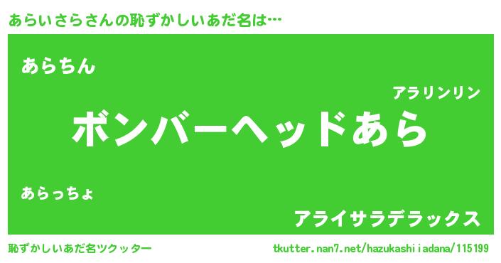 | ヘコむあだ名 | 『あらいさら(笑)』『あらを』 |