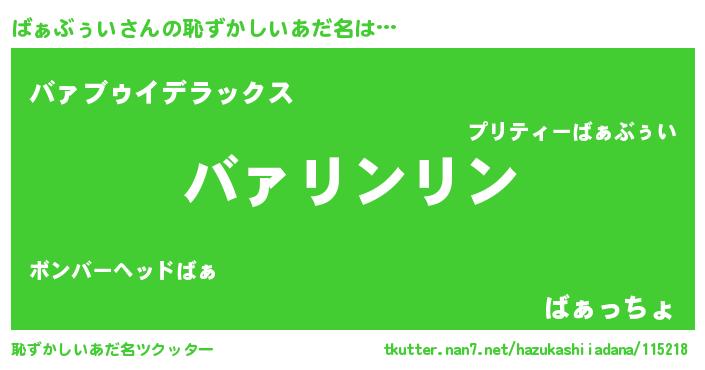 | ヒーロー風カッコイイあだ名 | 『暗黒騎士バァ』『超時空戦士バァブゥイ』 |
