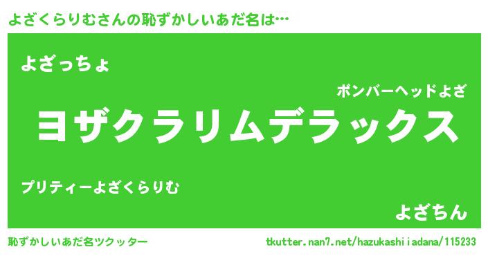 | 意味不明あだ名 | 『自称よざくらりむ』 |