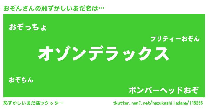 | ファンタジー風あだ名 | 『ゼオゾトゥ』『エターナルオゾンー』 |