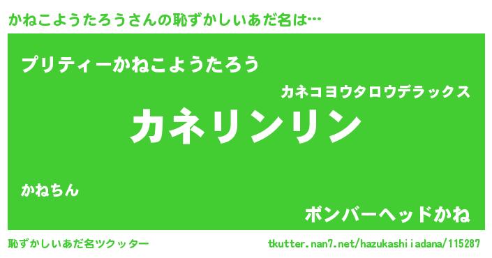| 意味不明あだ名 | 『とにかく怪しいかねこようたろう』 |